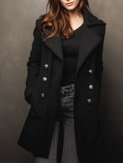 Classic Black Double-Breasted Buttons Longline Coat