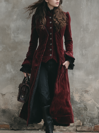 Vintage Double-Breasted Burgundy Velvet Coat