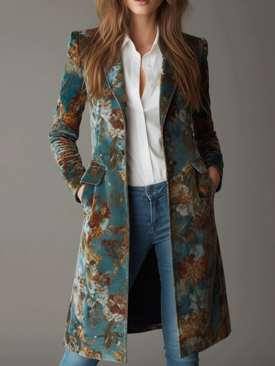 Vintage Floral Velvet Maxi Coat