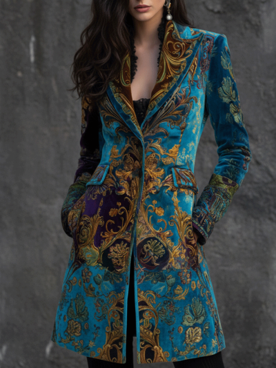 Vintage Boho Teal Baroque Velvet Coat