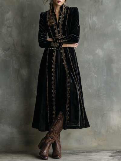 Rich Velvet Embroidered Long Coat