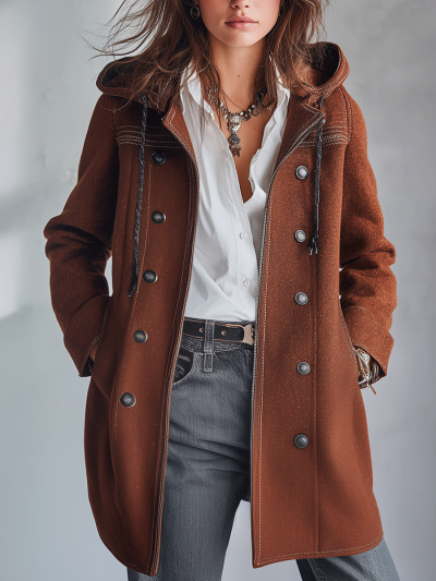Tuscany Nomad Chestnut Wool Hooded Coat