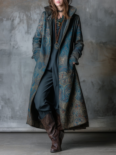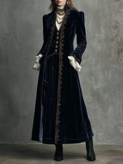 Retro Luxury Polyester Velvet Embroidered A-line Mid-length Coat