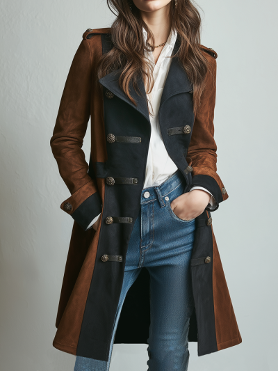 Retro Contrast Color Military Style Eco-friendly Suede Coat