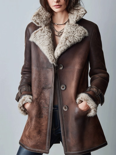 Retro Classic Warm Brown Faux Sheepskin Coat