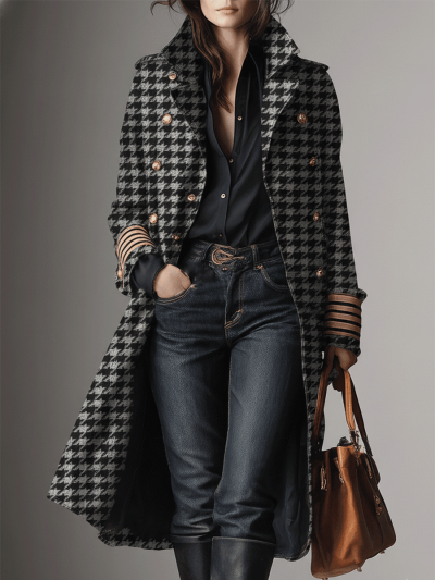 Retro Checked Double-Breasted Wool-Blend Overcoat