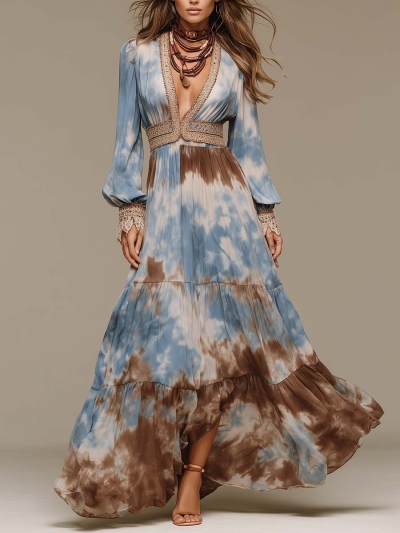 Bohemian Tie-dye Print Crochet Maxi Dress