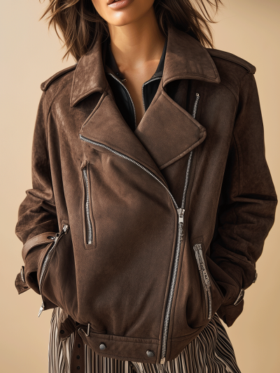 Retro-Style, Loose-Fitting, Soft Brown Suede Jacket
