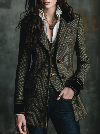 Vintage Heritage Plaid Tailored In Olive Brown Jacket