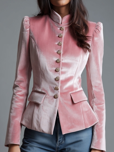 Vintage Green Velvet Mandarin Embroidered Collar Jacket
