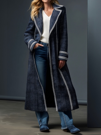 Vintage Navy Double-Braided Trim Long Tweed Jacket