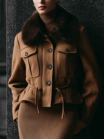 Vintage Military Style Wool Blend Fur Collar Jacket