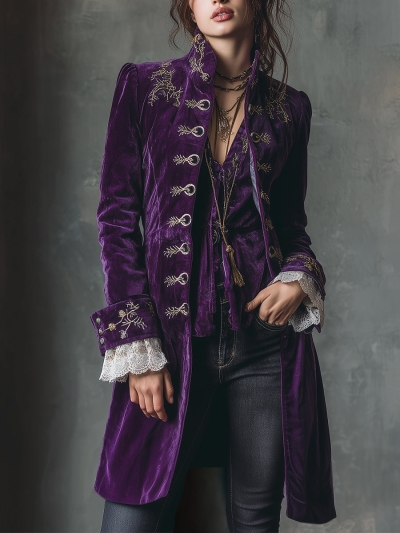 Vintage Embroidered Polyester Velvet Mid-length Jacket