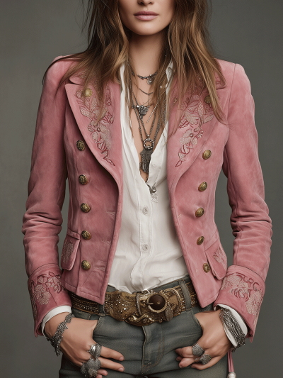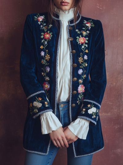 Vintage Embroidered Polyester Velvet Slim Jacket