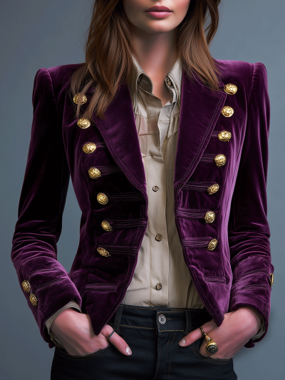 Vintage Deep Purple Velvet Gold Buttons Jacket