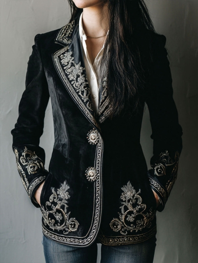 Vintage Bohemian Style Velvet Lapel Embroidered Double-breasted Jacket