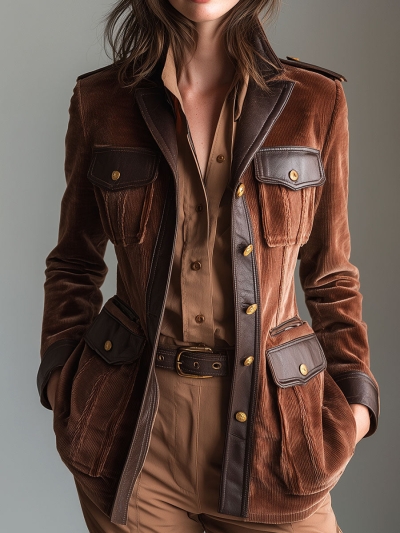 Vintage Brown Corduroy Fitted Jacket With Contrast Trim