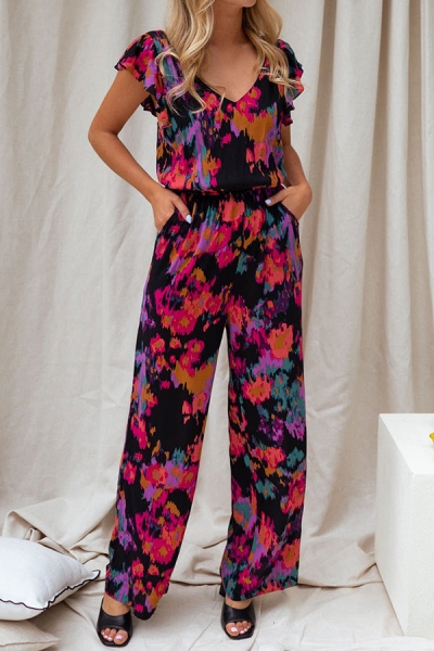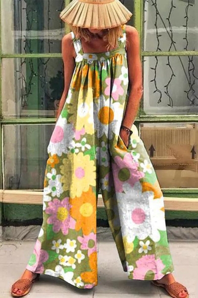 Loose Multicolor Sunny Flower Print Jumpsuit