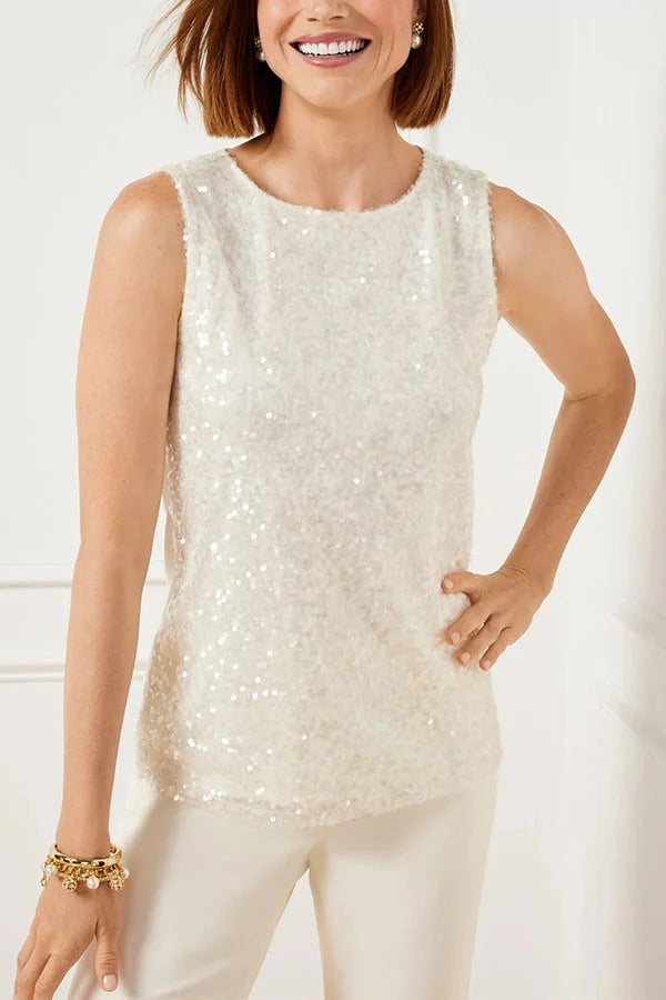 Add Luster Sequin Patchwork Crew Neck Loose Tank