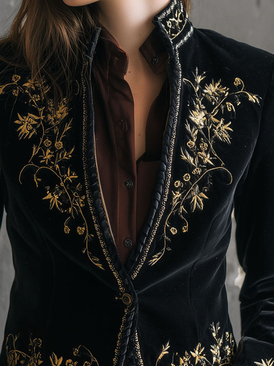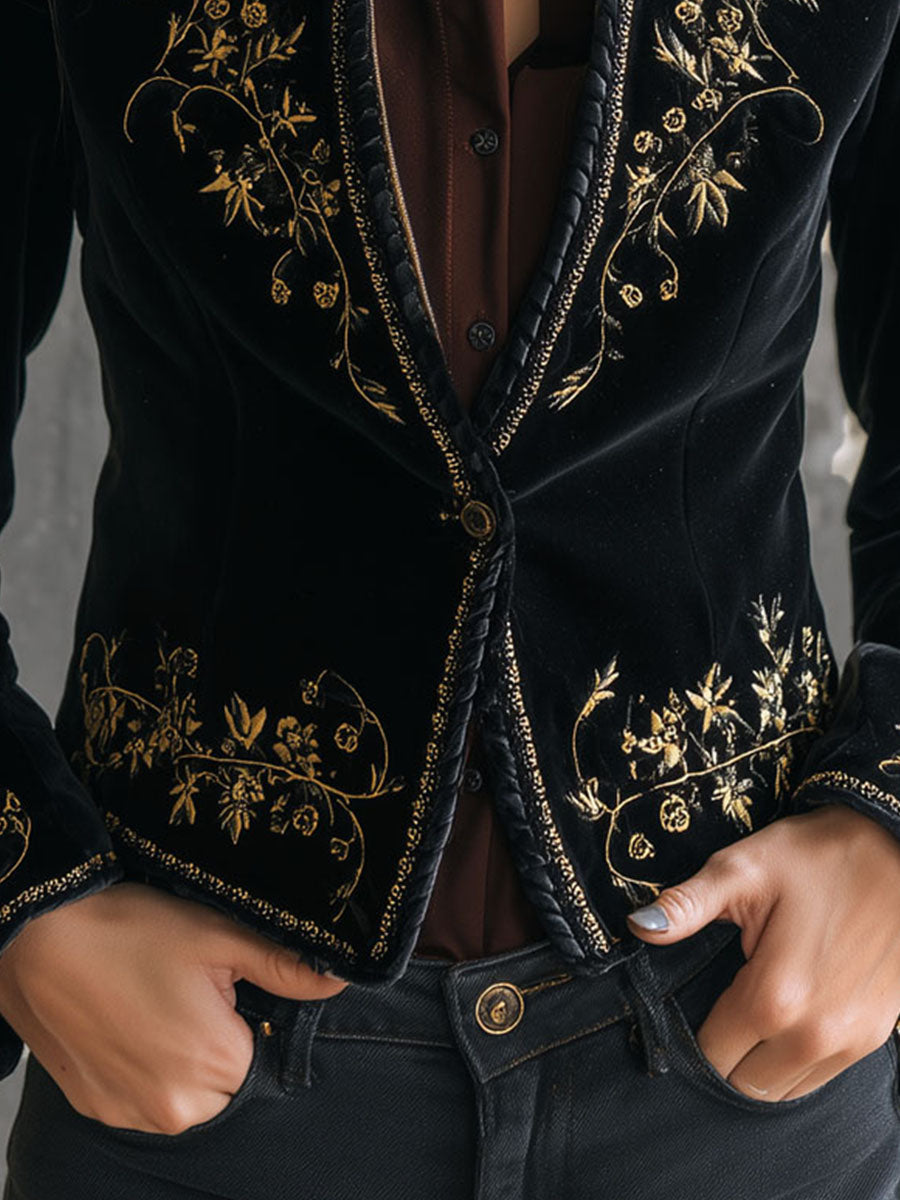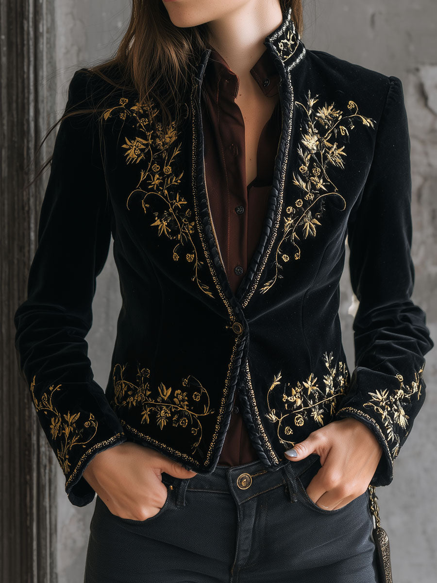 Baroque Black Velvet Gold Embroidered Jacket