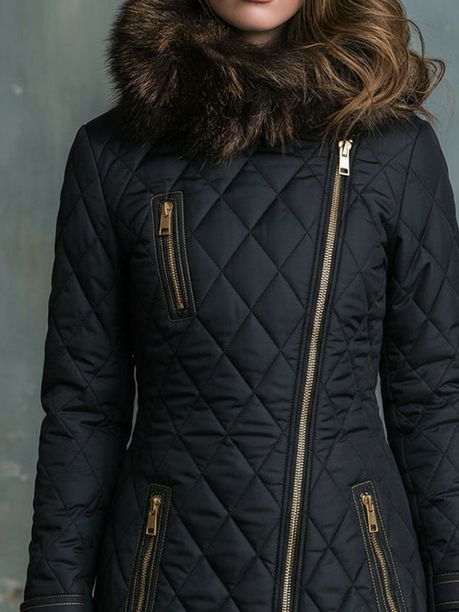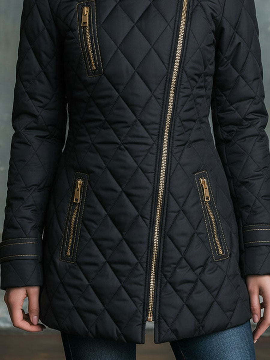 - Asymmetrical Design: The unique zip adds a modern twist to the classic quilted jacket, setting you apart with its fashionable edge.
