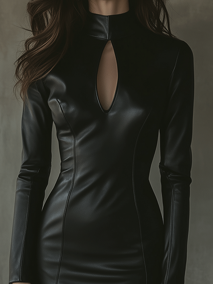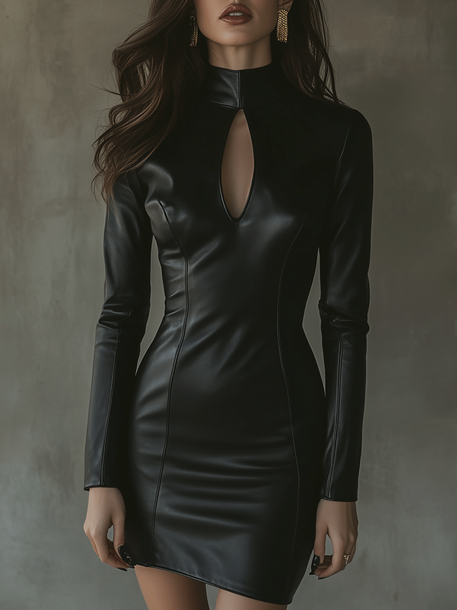 The Black Faux Leather Keyhole Mini Dress is an edgy and stylish choice for any fashion-forward wardrobe. Featuring a striking keyhole design, this mini dress is perfect for making a confident statement. With its form-fitting silhouette, it beautifully accentuates curves while ensuring comfort and elegance.