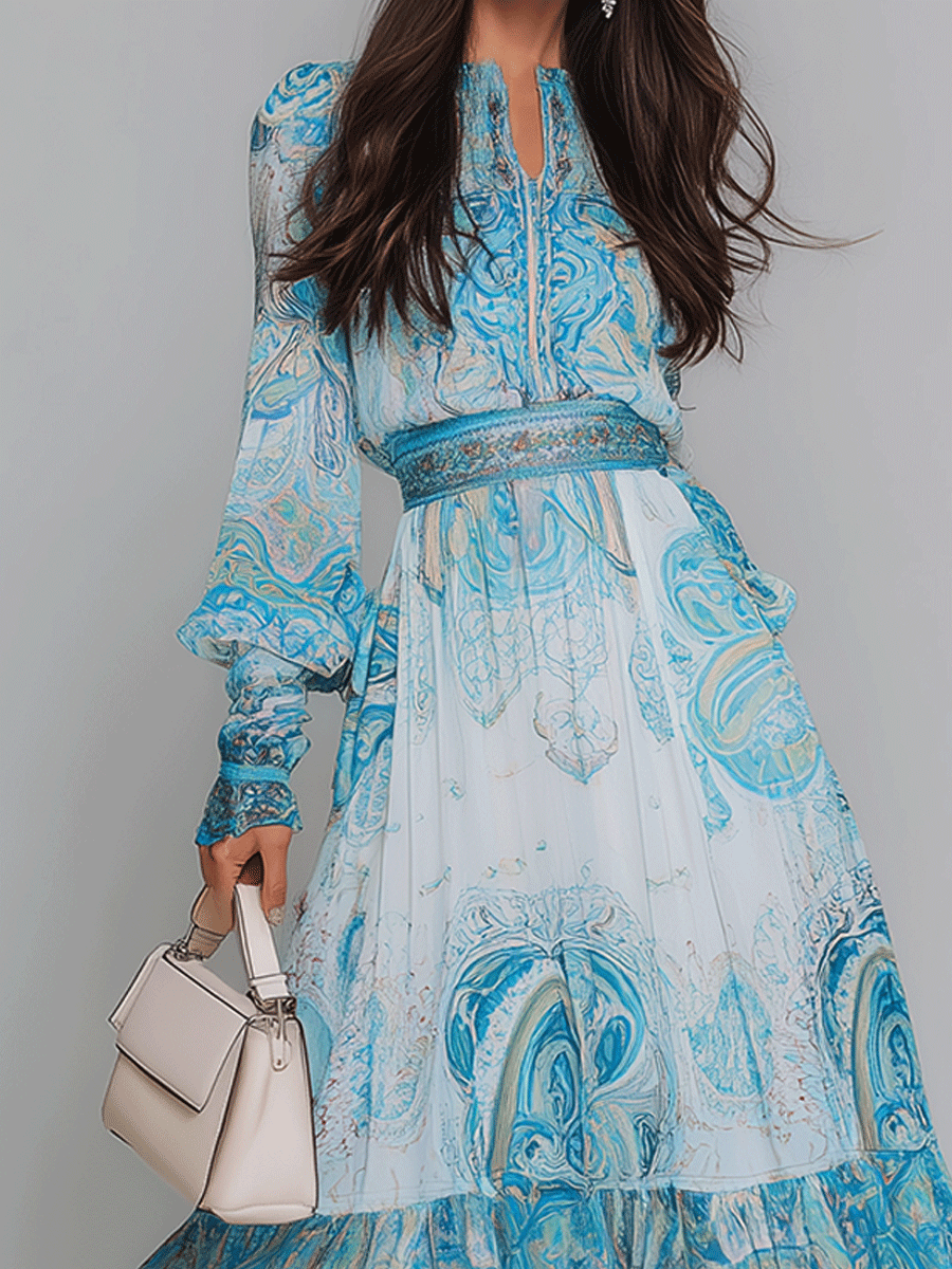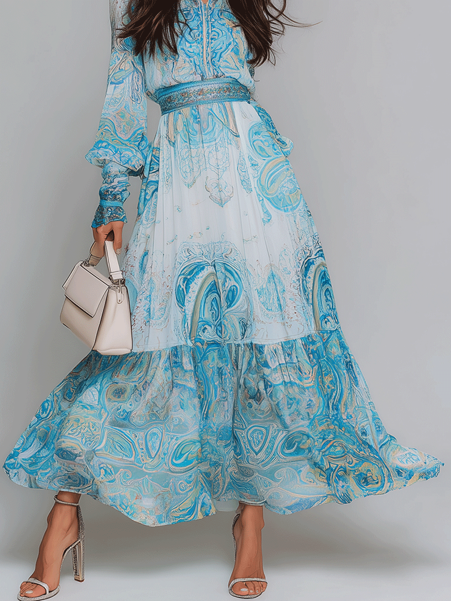 Bohemian Aqua Paisley Lightweight Flowy Maxi Dress