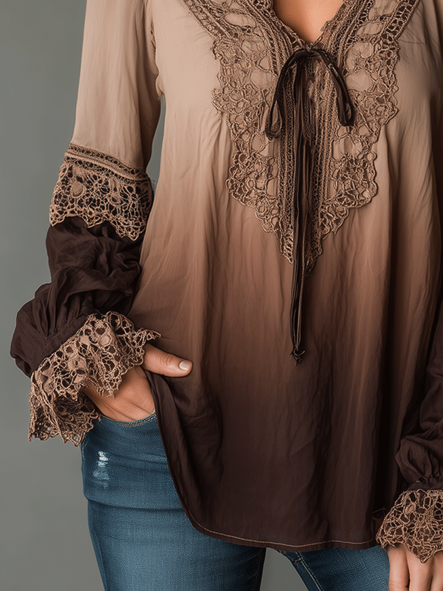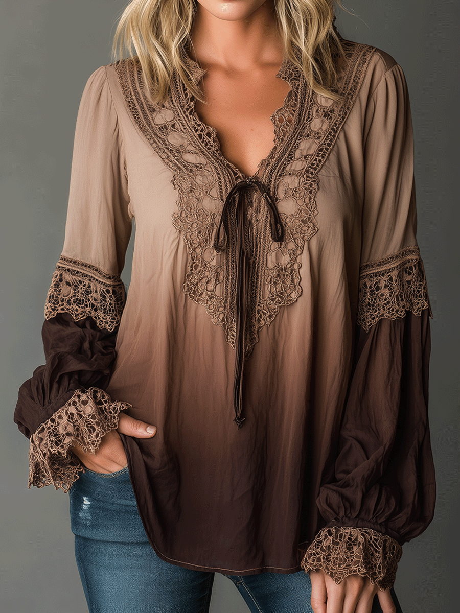 Bohemian Style Gradient Lace Pastoral Style Shirt