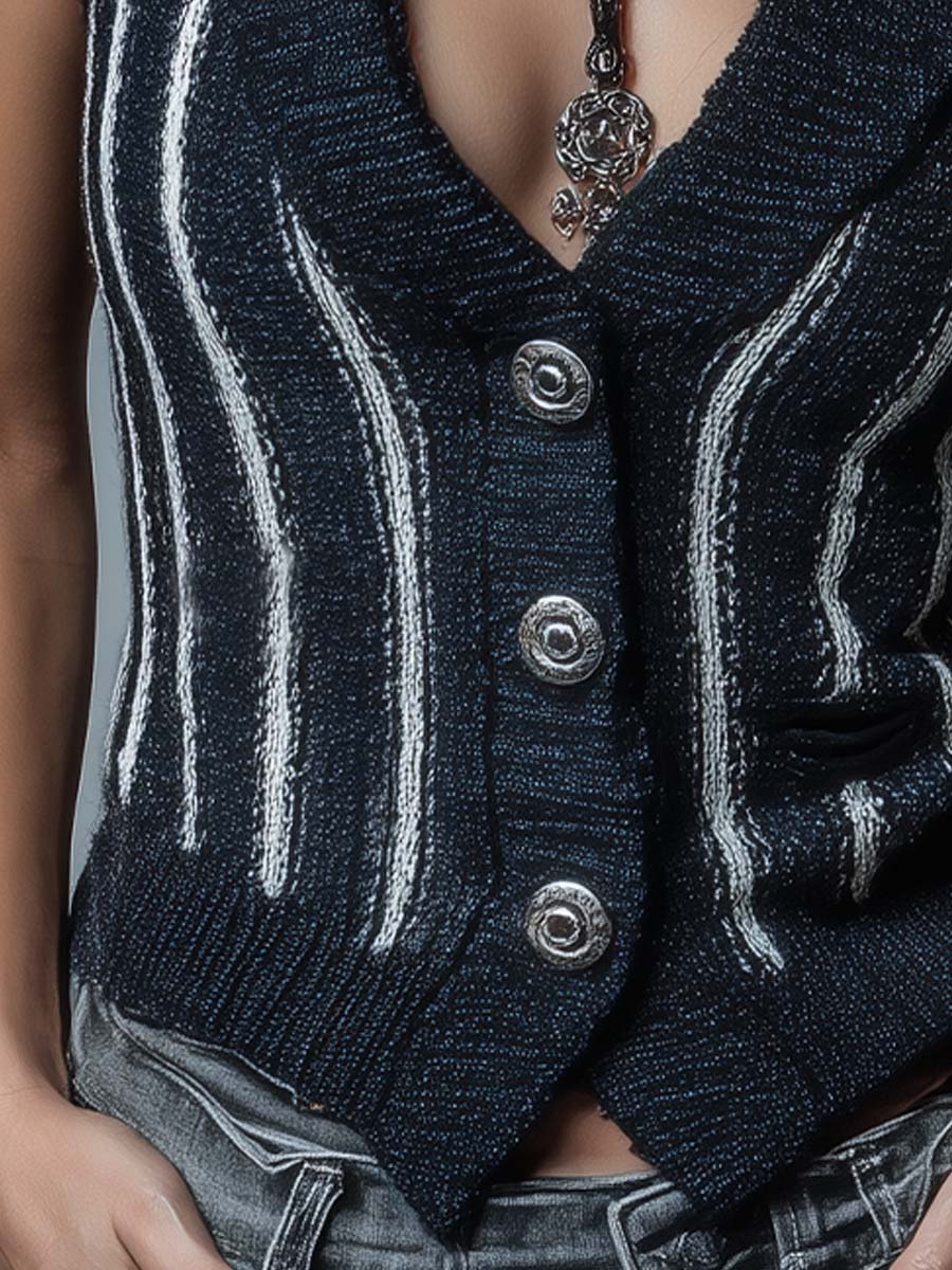 The Bohemian Style Navy Blue Contrast Striped Knitted Slim Vest is an essential piece for those who love to express their individuality through fashion. With its stylish design and versatile use, it's a great addition for any fashion-conscious individual.