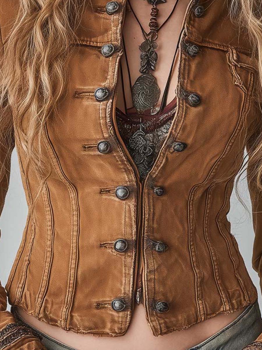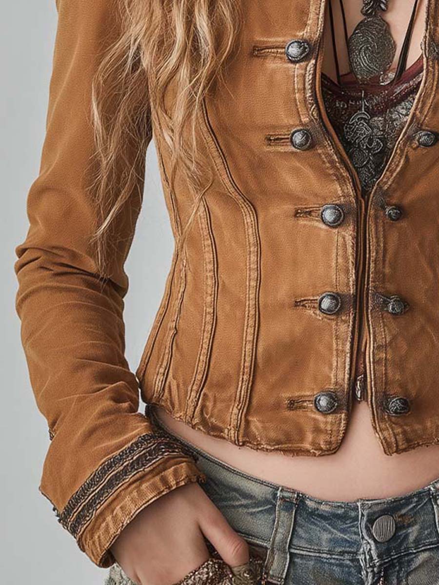Bohemian Style Practical Washed Double-breasted Short Jacket