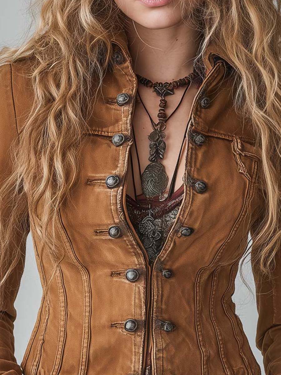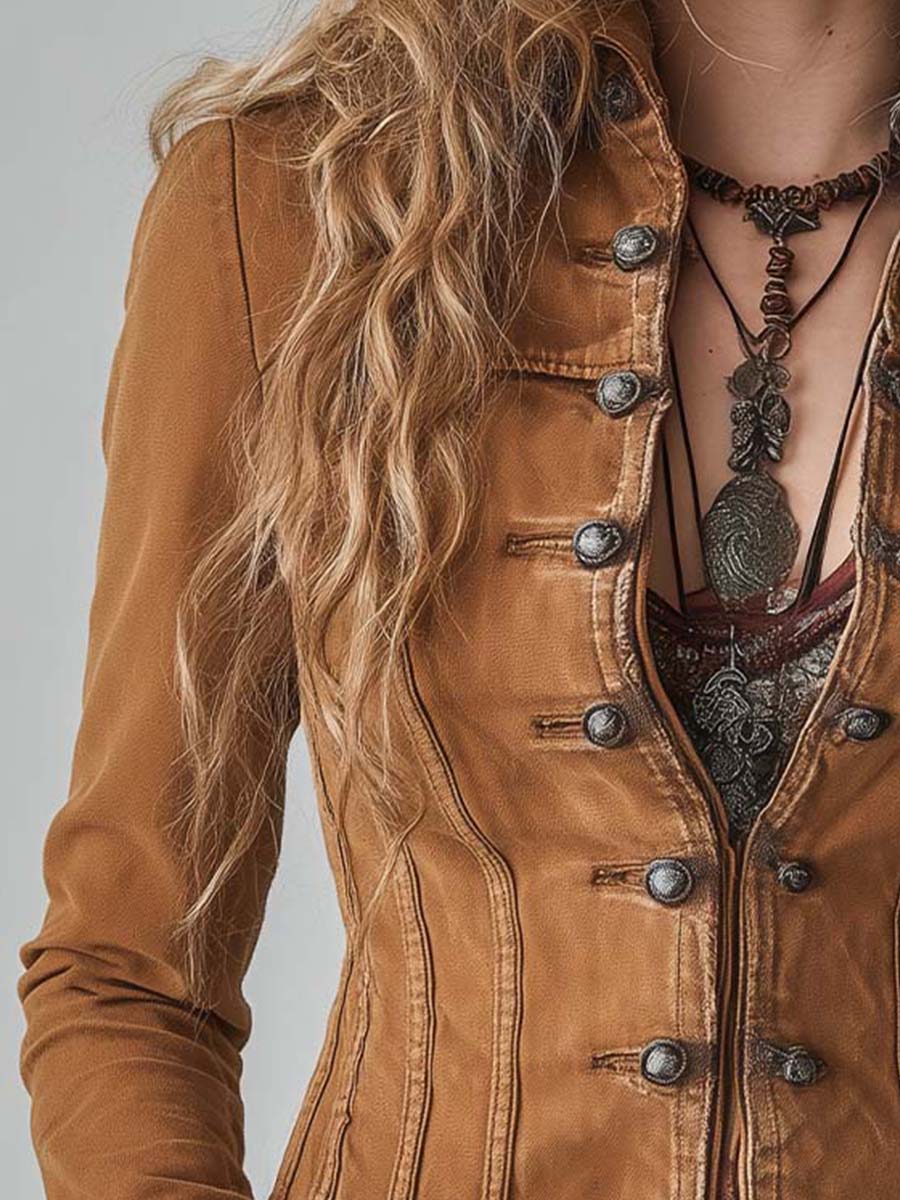 The Bohemian Style Practical Washed Double-breasted Short Jacket is a versatile piece that combines timeless elegance with modern style. Its washed finish gives it a distinctive, laid-back, and trendy look that is perfect for any casual or semi-formal occasion.