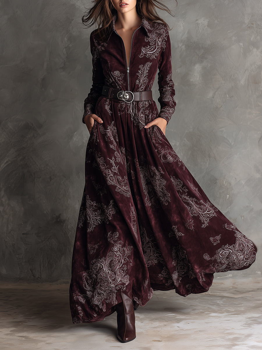 This Bohemian Suede Printed Front Zip Maxi Dress is an ideal choice for those looking to make a statement with minimal effort. Its blend of comfort, style, and versatility ensures it can be dressed up or down, making it perfect for a variety of occasions. Whether you're heading to a festival, a brunch, or a casual evening out, this dress is sure to impress.