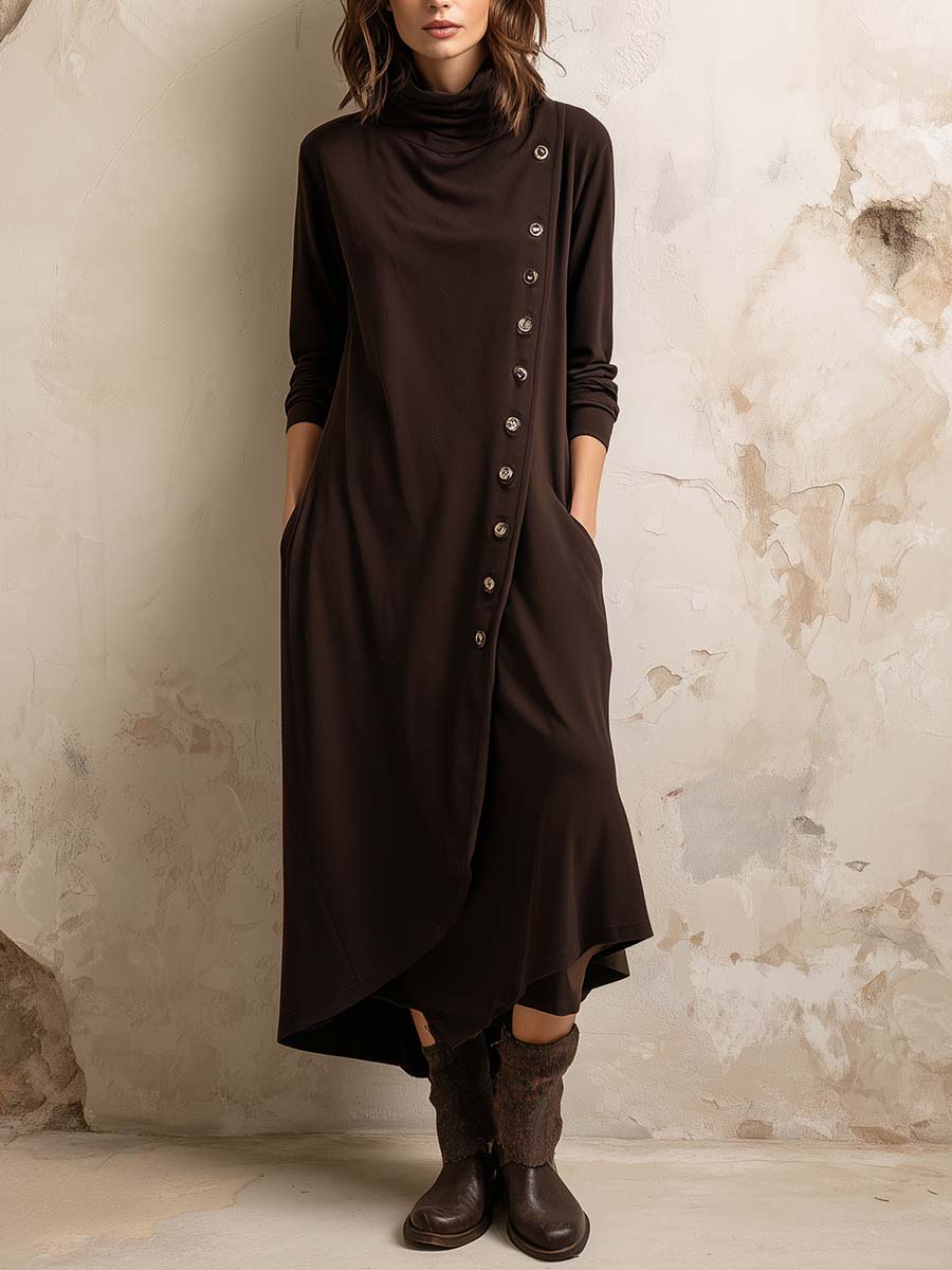 This Boho-Inspired Midi Dress with a Side Button Placket is a versatile and stylish choice for anyone looking to infuse their wardrobe with bohemian charm. Its unique design elements and rich textures make it a standout piece that is both comfortable and eye-catching, perfect for expressing your individual style.
