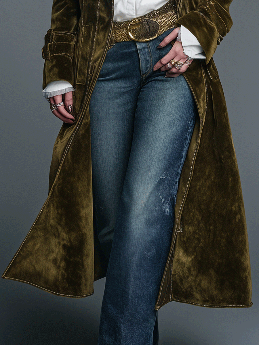 The Boho Luxe Olive Velvet Leopard Lapel Long Coat is a must-have addition to your wardrobe for its luxurious material, distinctive design, and versatile styling options. It's perfect for anyone looking to make a fashion statement while enjoying the comfort and warmth of a high-quality coat.