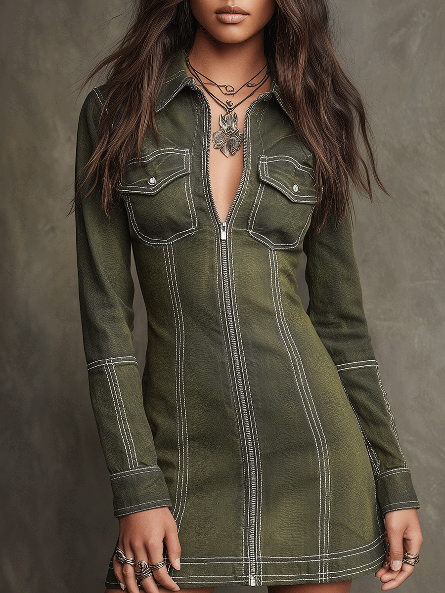 Description: Embrace the perfect blend of bohemian and military chic with this olive utility mini dress. This versatile piece combines functionality with fashion, offering a stylish look that's both comfortable and trendy. The dress features a relaxed fit with practical elements and elegant detailing, making it a must-have addition to your wardrobe.