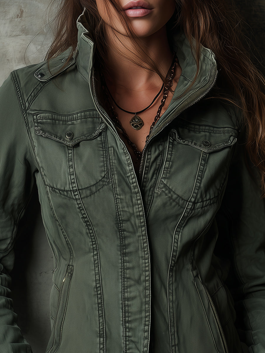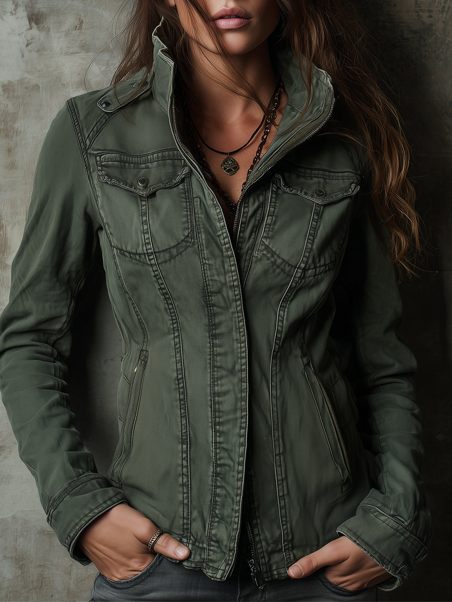 The Boho Vintage Washed Stand Collar Denim Jacket is a statement piece that combines function with fashionable flair. Its vintage-inspired design and modern tailoring will effortlessly update your wardrobe while providing comfort and style for any occasion.