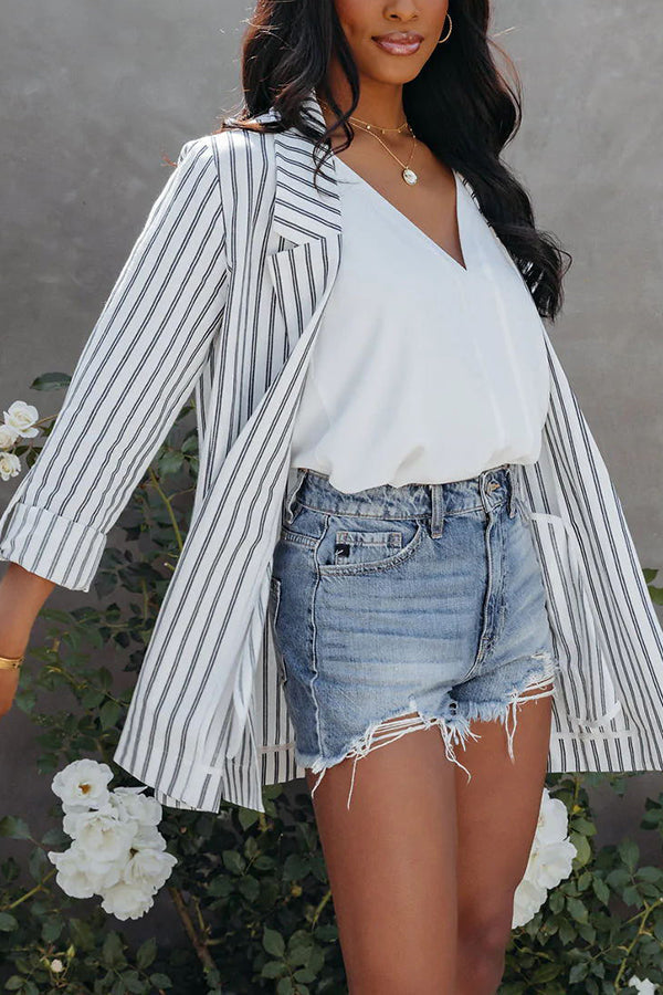 BOSS Linen Blend Striped Relaxed Blazer