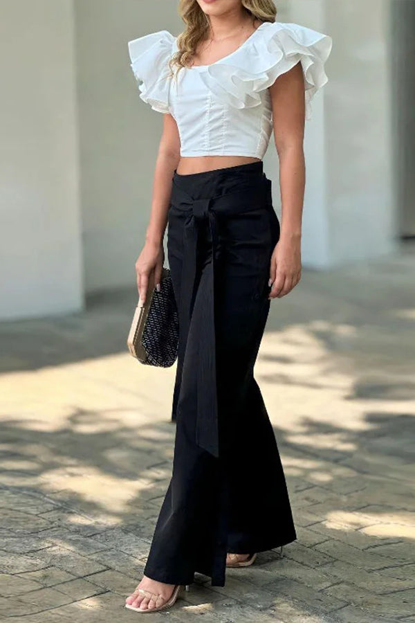 Butterfly sleeve tie solid color two piece set