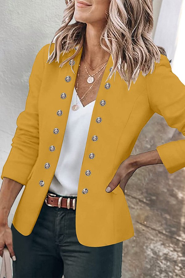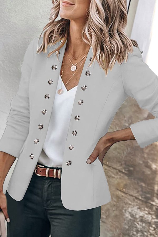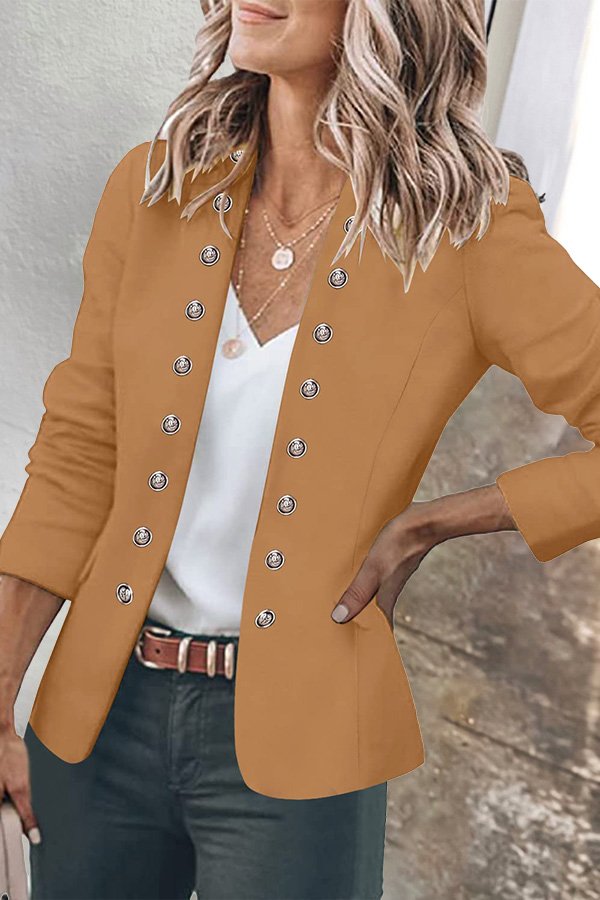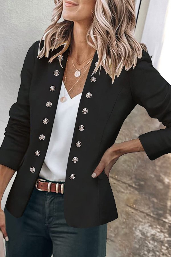 Button Down Pockets Open Front Business Jacket