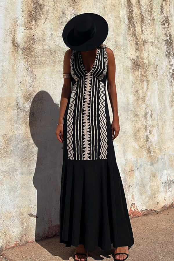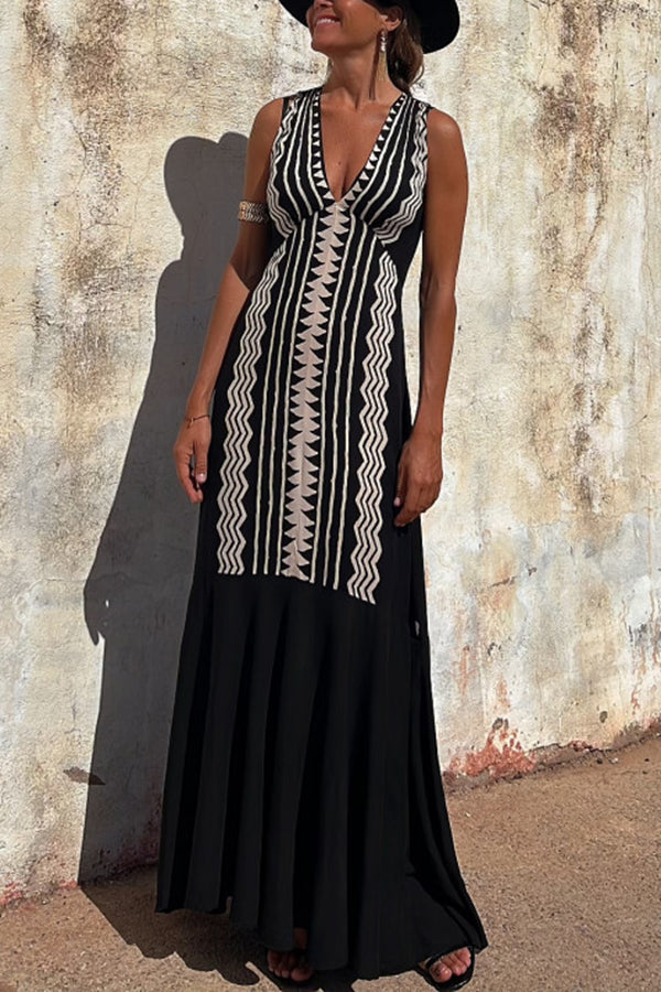 Cabo Dreams Ethnic Print V-neck A-line Maxi Dress