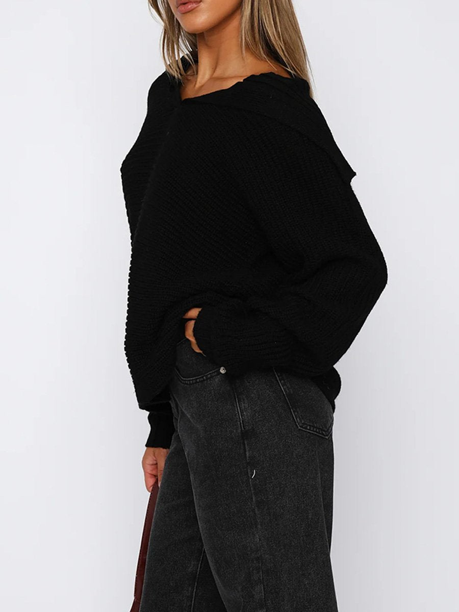 Effortless Chic: Elevate your casual look with our All-match Pullover Sweater featuring a relaxed fit and navy collar for added style.