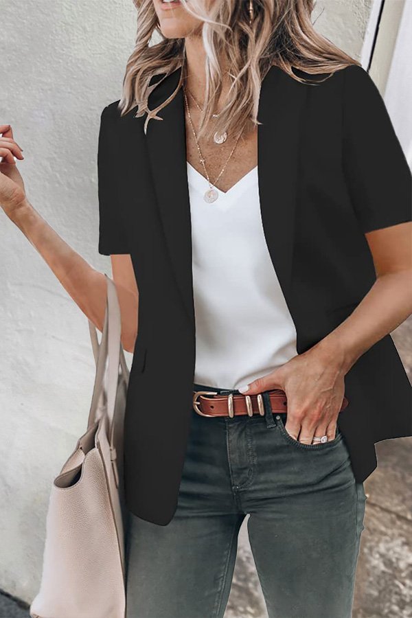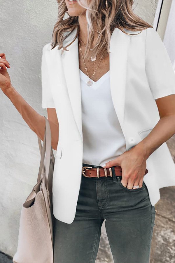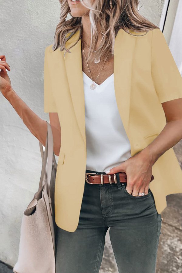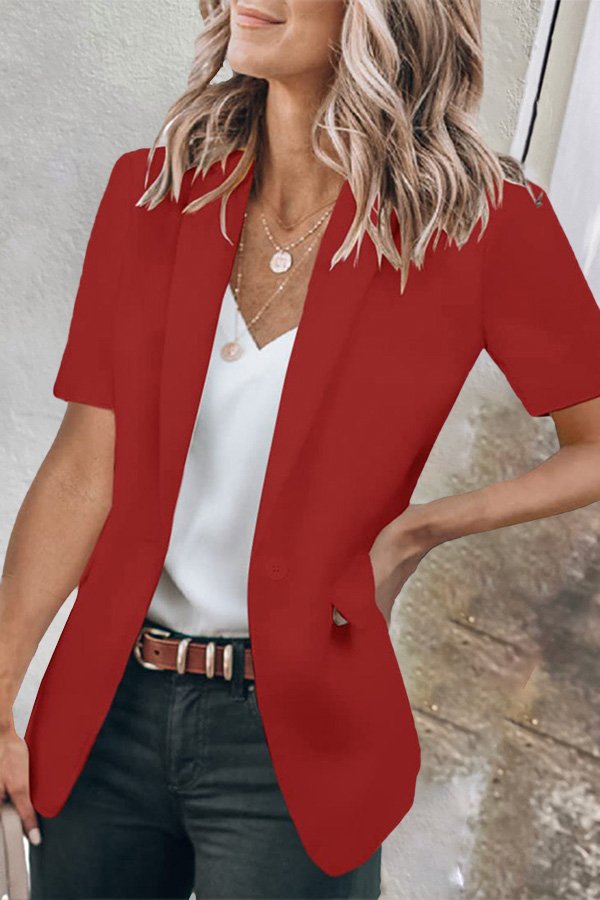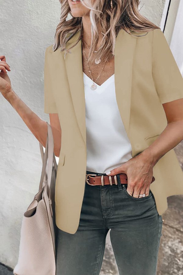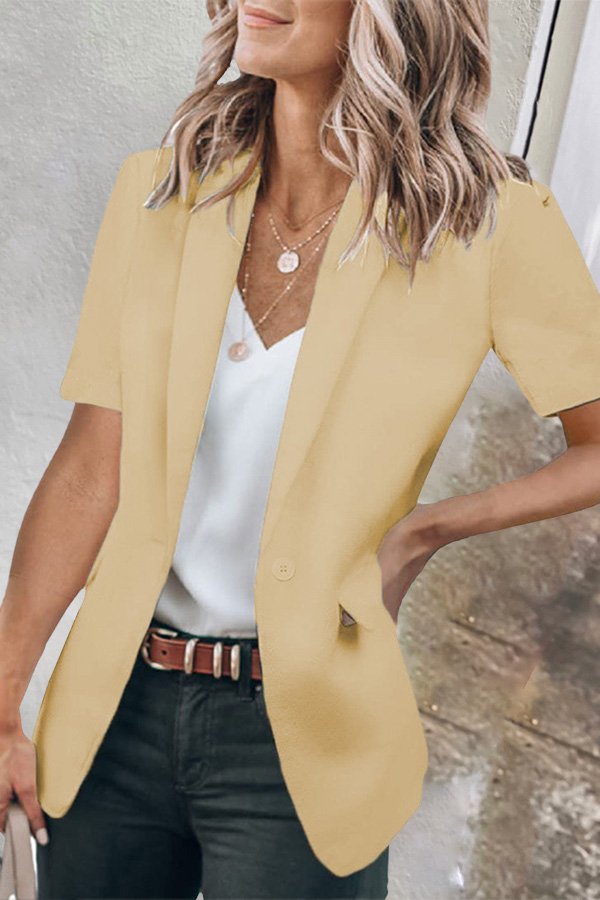 Casual Lapel Short Sleeve Plain