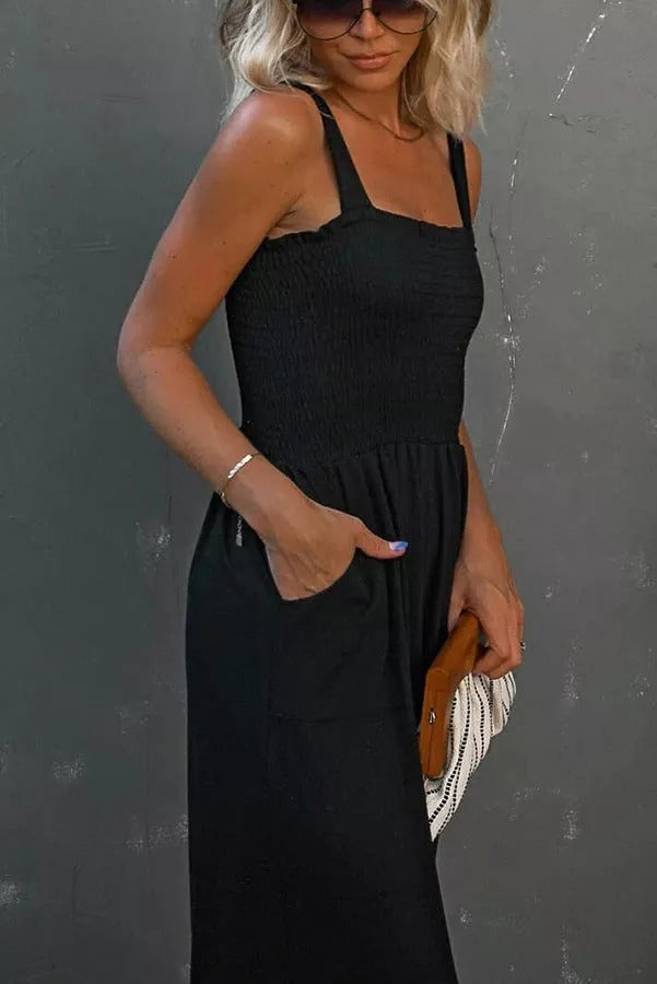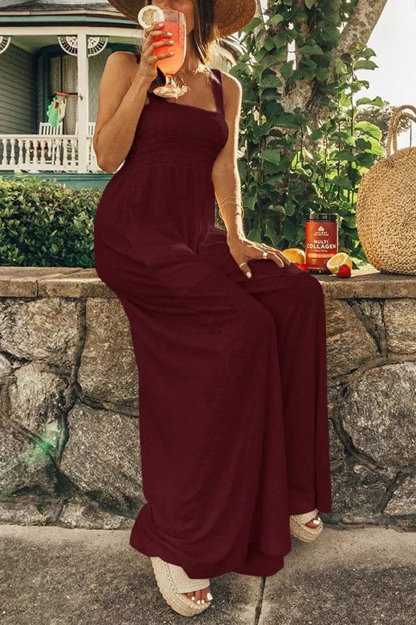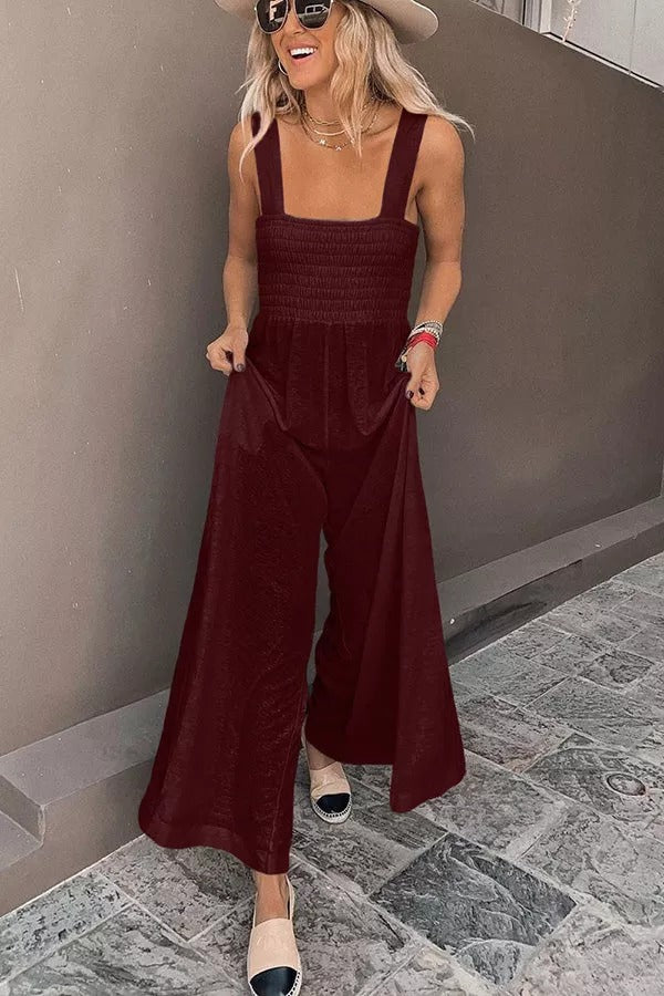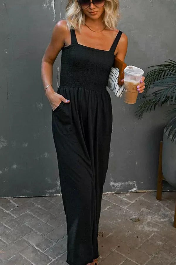 Cayo Smocked Pocketed Wide Leg Jumpsuit