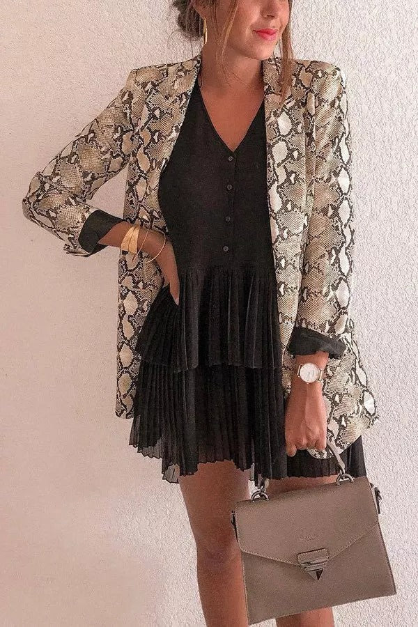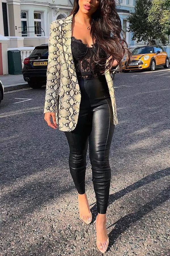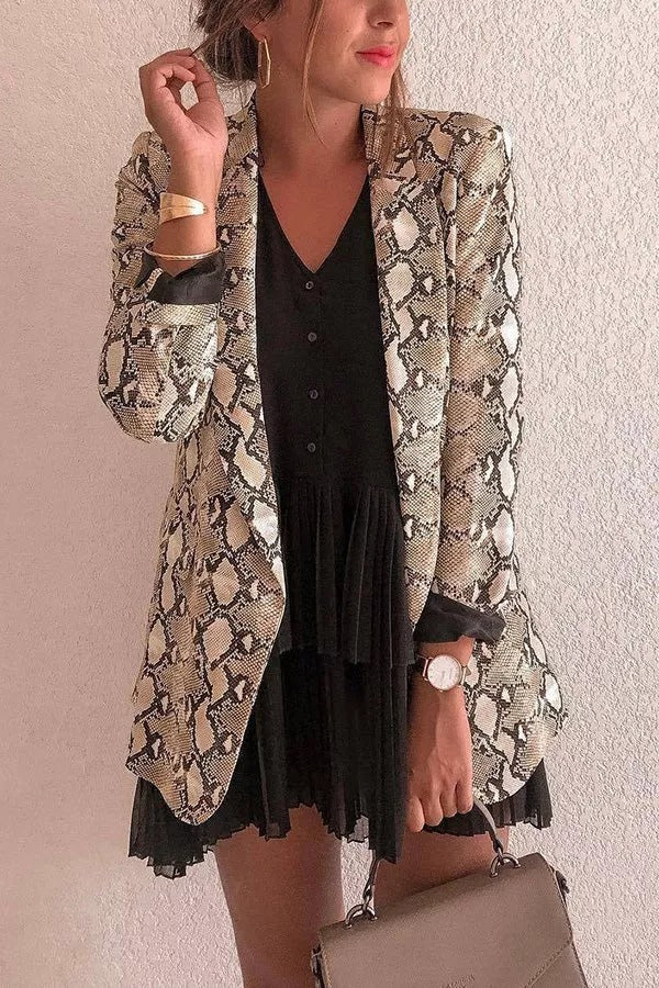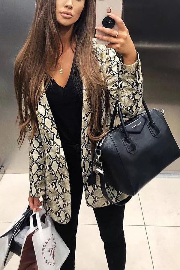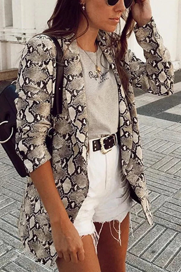 Charmer Snake Print Lapel Loose Blazer