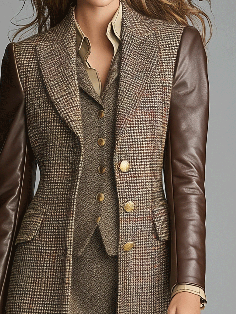 The Classic Tweed And Leather Contrast Coat is not just a garment, but a statement piece that elevates any outfit. With its combination of luxurious materials and innovative design, it serves as a bridge between classic tradition and contemporary style. This coat is perfect for those who appreciate craftsmanship and wish to make a polished impression.