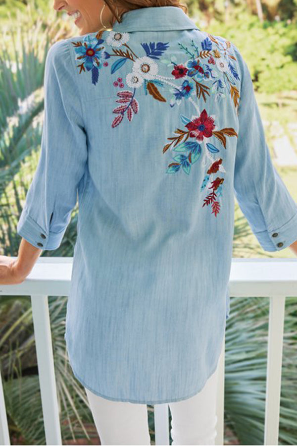 Denim Embroidered Shirt Jacket