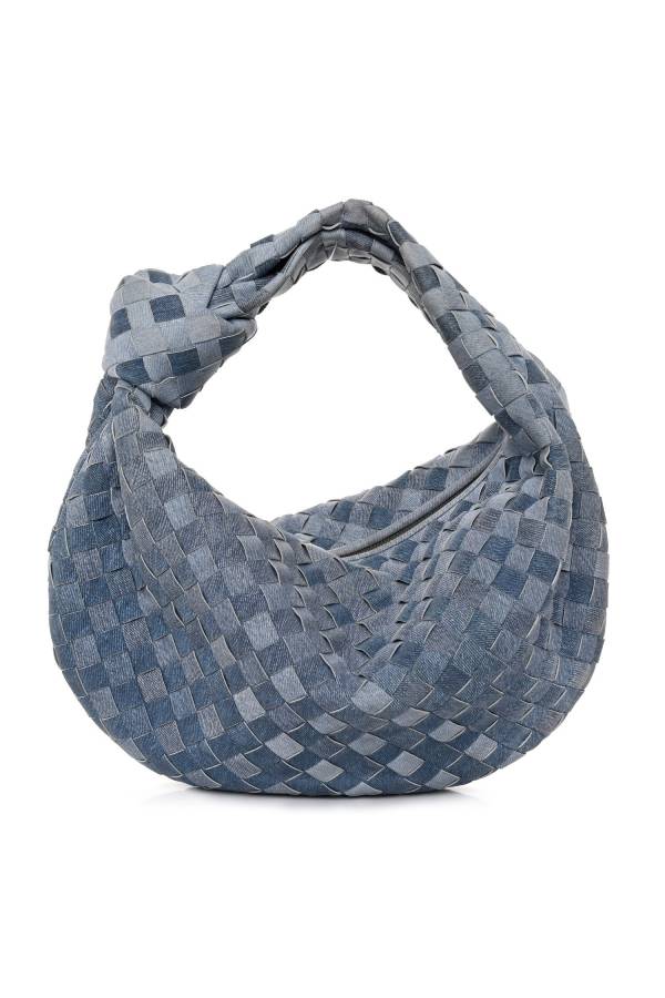 Woven denim fabric construction + crescent-shaped silhouette, rich in texture and layers, metal zipper enhances the overall quality, combining both vintage and practical attributes.