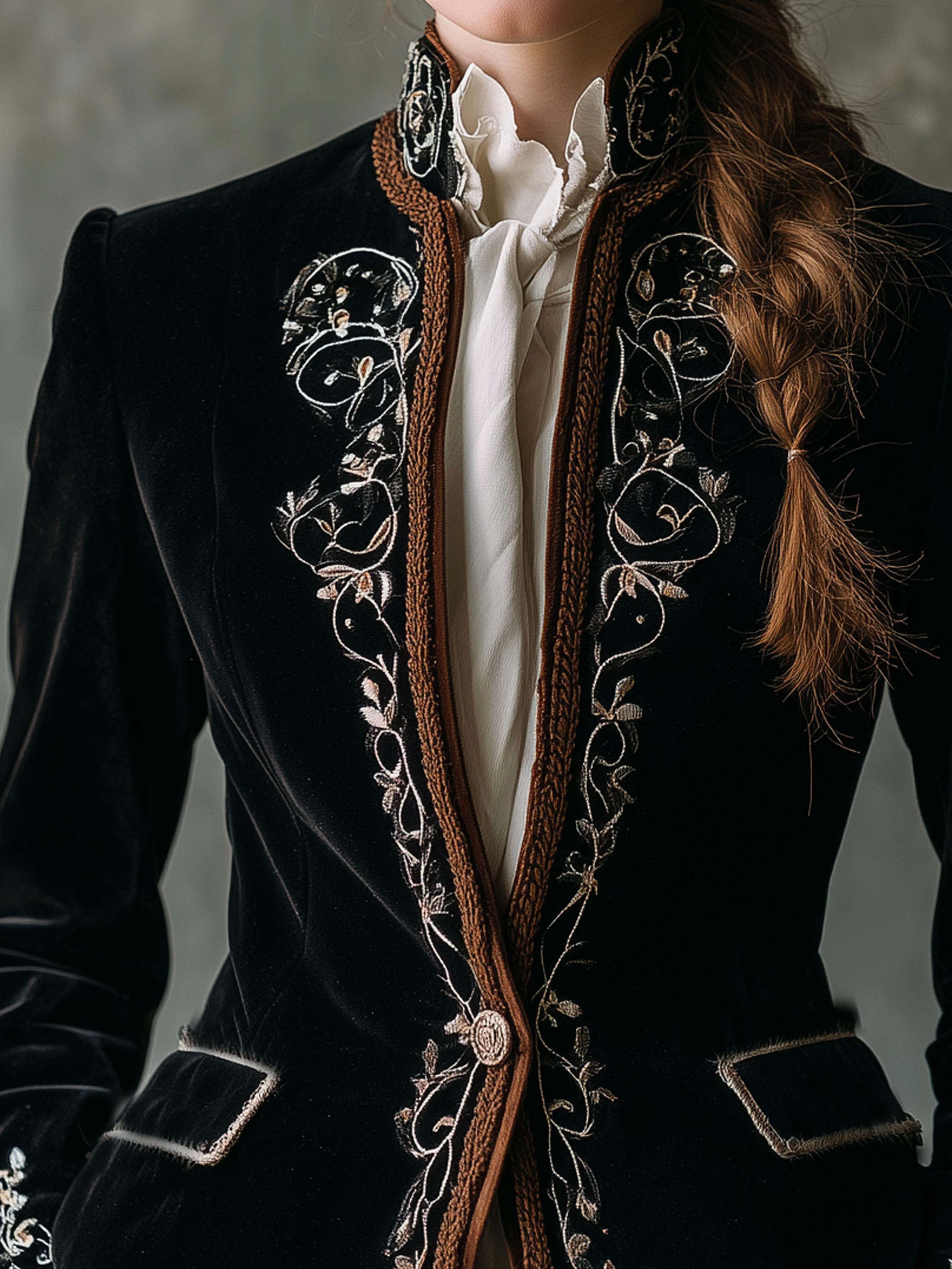 ConclusionWhether you're attending a gala or looking to elevate your professional wardrobe, the Elegant Black Luxurious Velvet Embroidered Tailored Jacket is an impeccable choice. Its timeless design ensures you'll wear it time and time again, exuding confidence and style. |