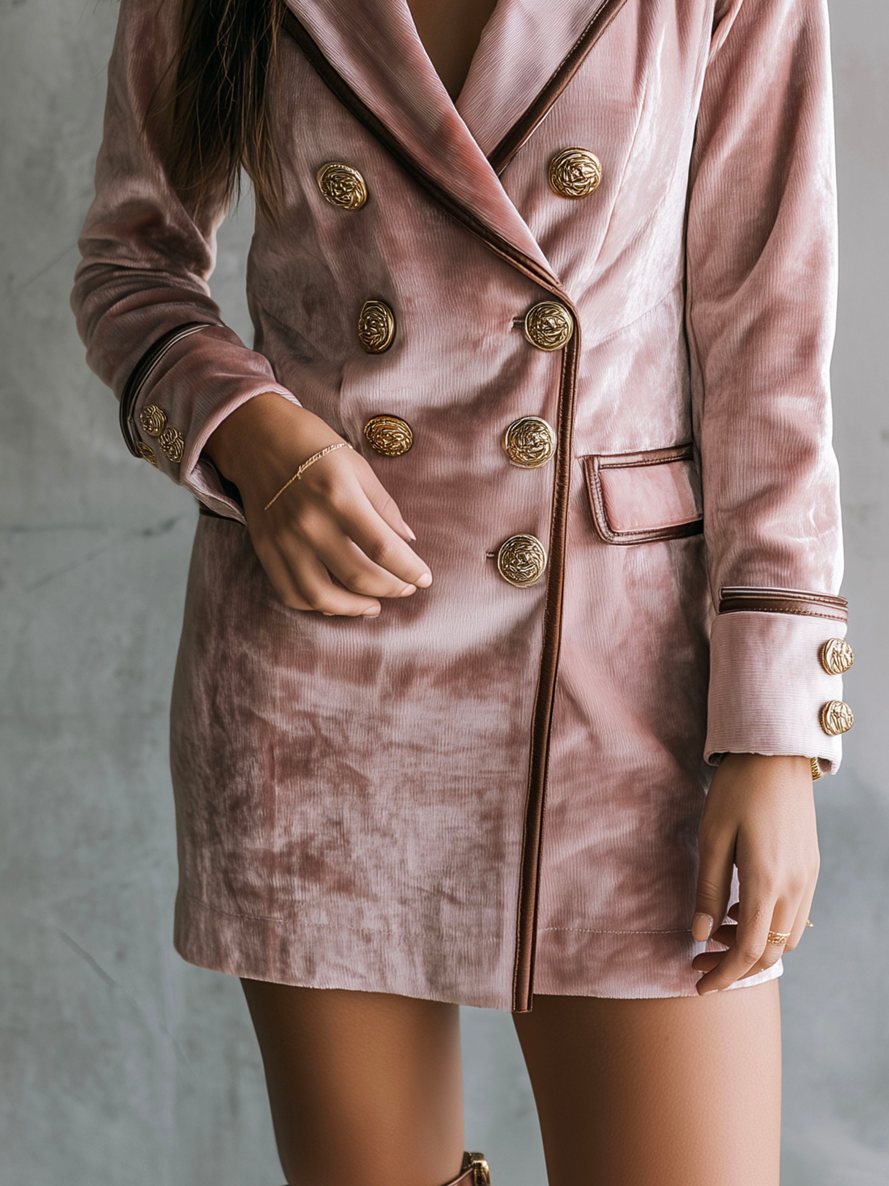 Elegant Dusty Pink Double-Breasted Velvet Blazer Dress