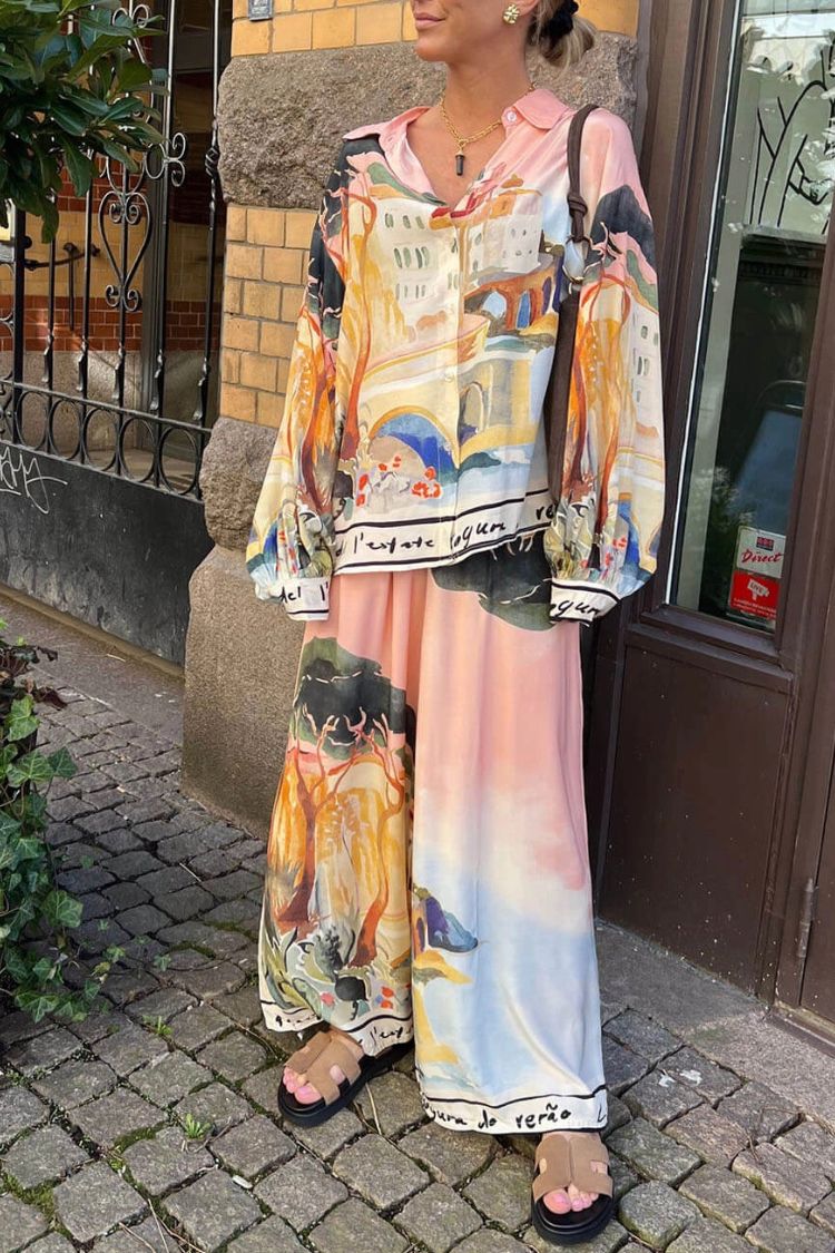 Ellison Unique Print Elastic Waist Pocketed Wide Leg Pants